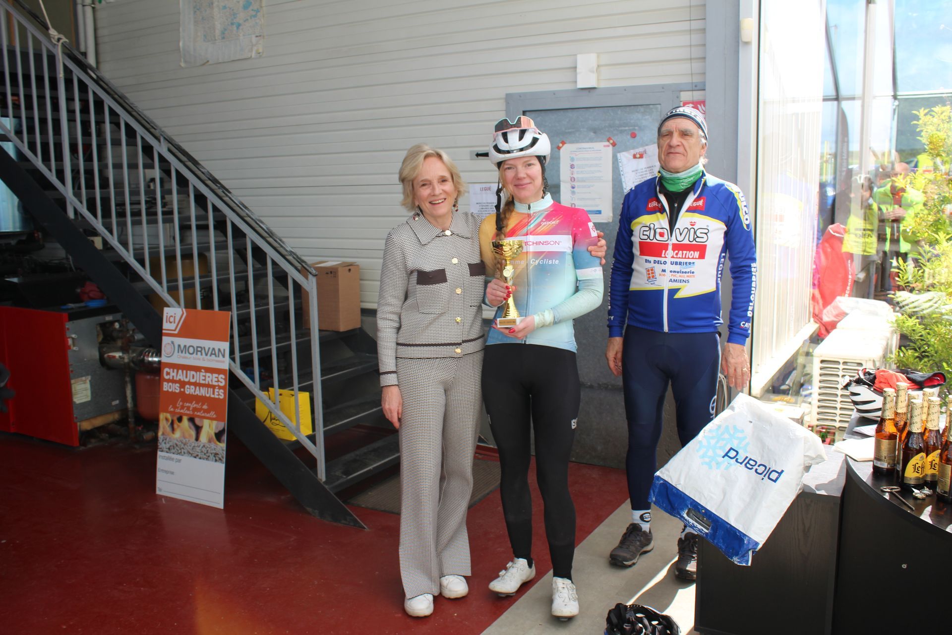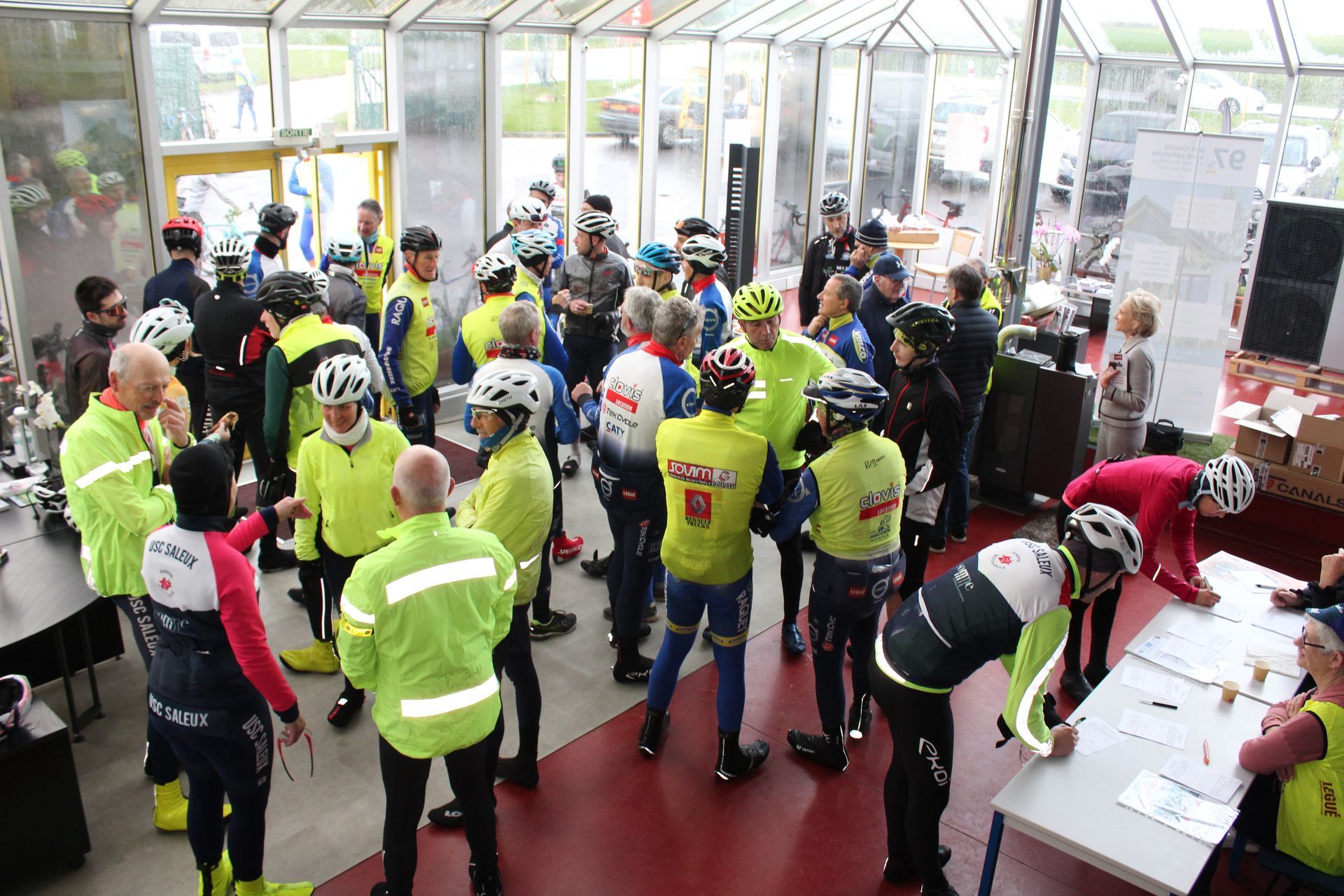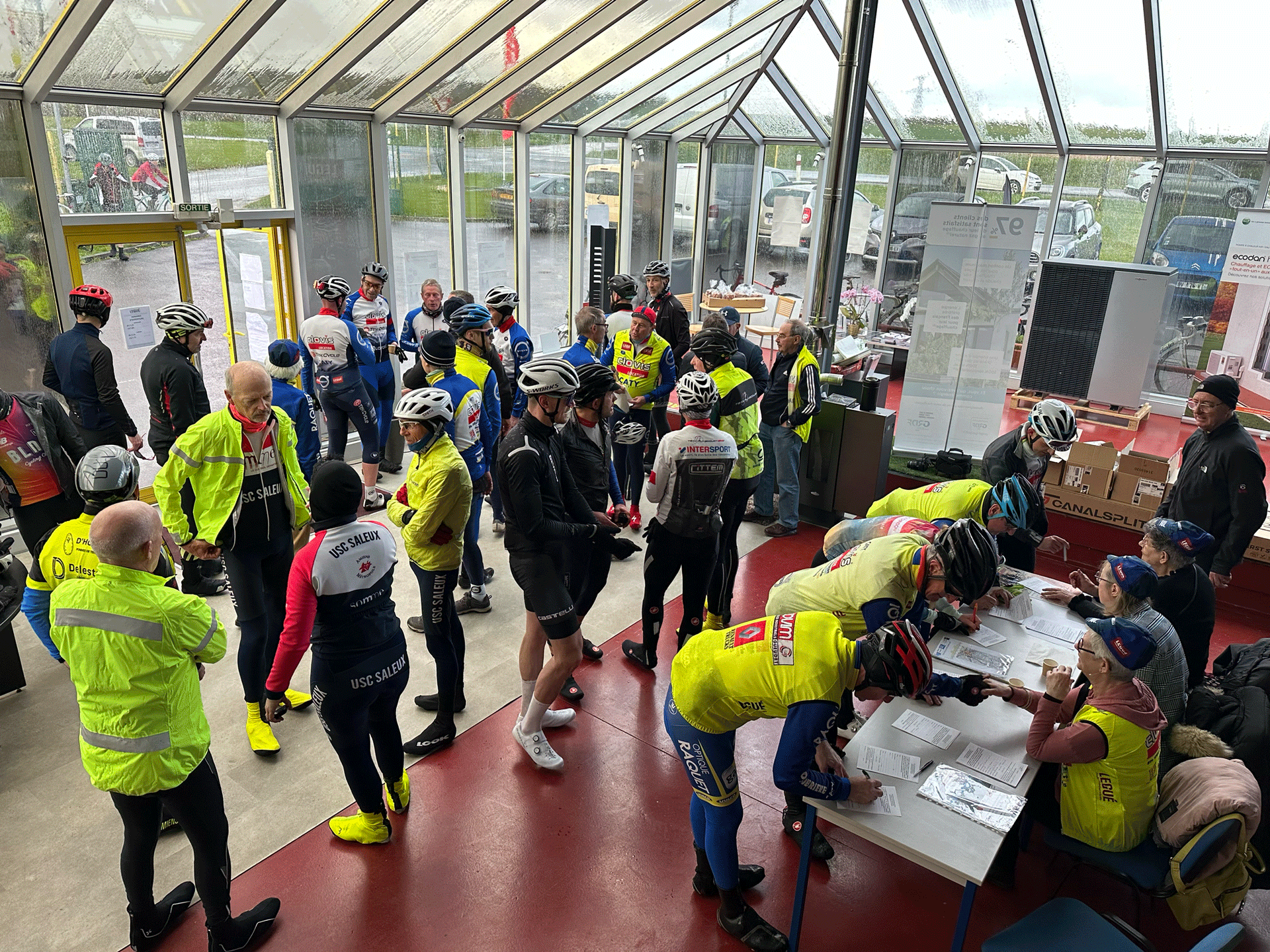 Enfin Saleux se dessine, et le siège Legué. Ouf. Même si sur la fin le soleil aura fait son apparition, les cyclistes finissent bien essorés. Mme Cécile De Boisgrollier, Daniel et les bénévoles sont là pour nous chouchouter après ces heures éreintantes de vélo. Bière, panaché, soda, brioches…Miam. Une coupe était remise au club le plus représenté.