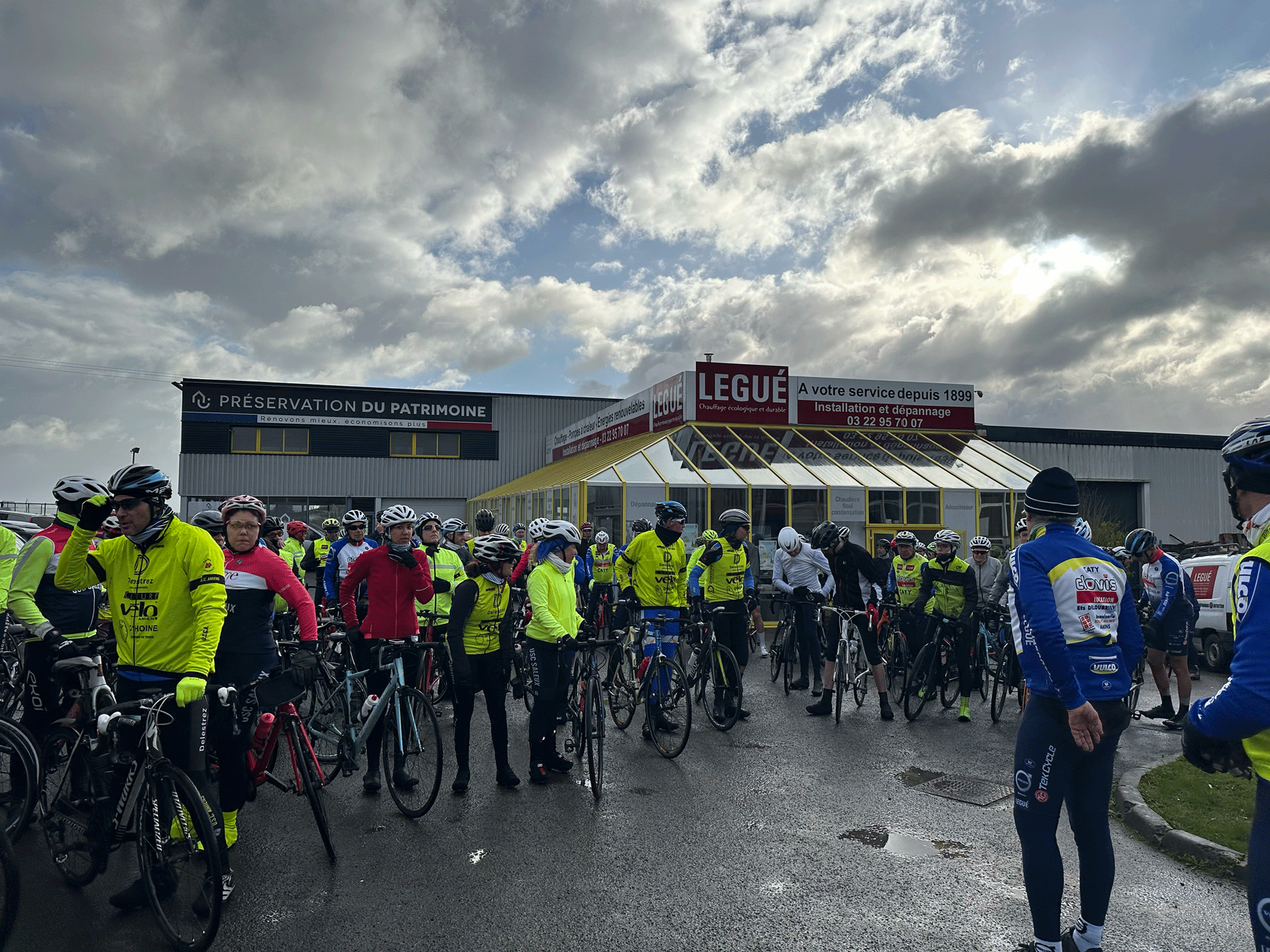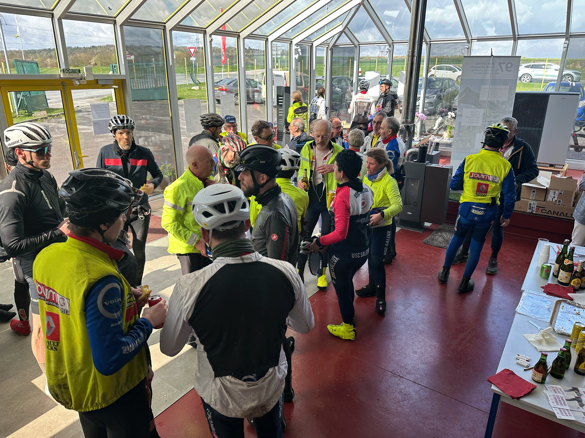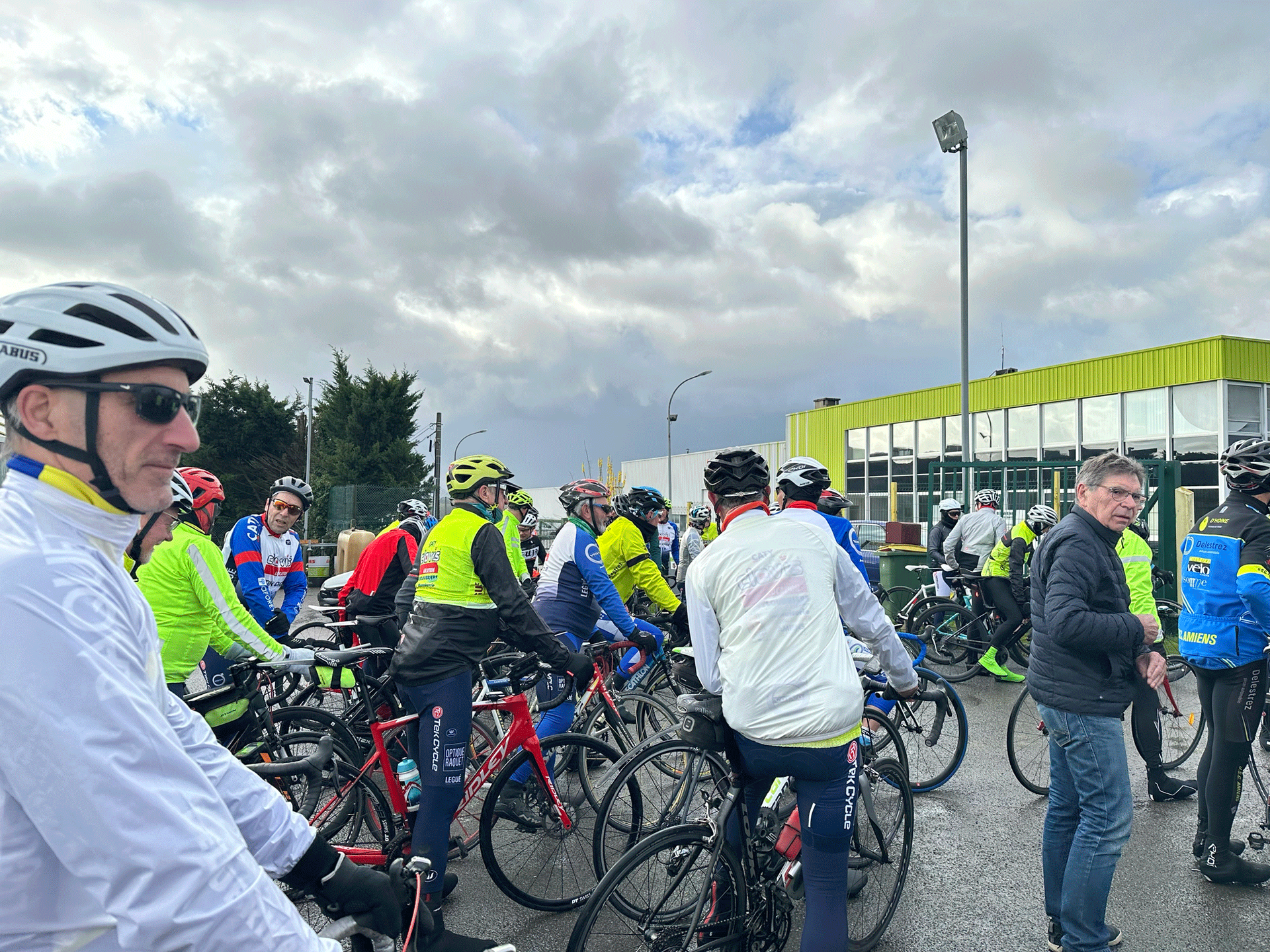 Café et chouquettes, offerts par Mme Cécile De Boisgrollier et proposés par les indispensables assistants du club dans les locaux de l’entreprise Legué à Saleux, ont certainement donné un peu de courage supplémentaire aux valeureuses et valeureux qui allaient s’élancer par ce temps sur l’un des 2 parcours proposés au sud d’Amiens. 90km ou 69 km pour le plus court